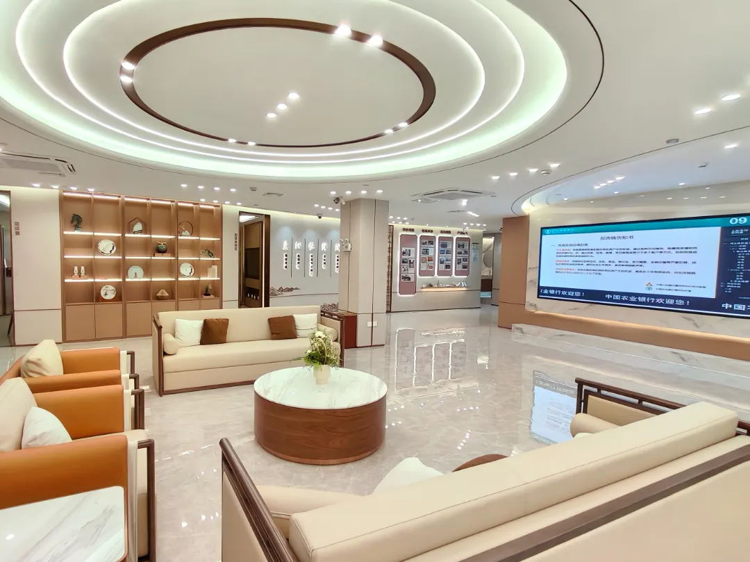 “壹私行”是中國農(nóng)業(yè)銀行2020年發(fā)布的首個私人銀行專屬品牌,擁有自己全新的視覺形象,對場景建設有著較高的標準和要求。常宏深圳運營中心惠陽項目部根據(jù)項目實際情況,突出當?shù)靥厣?,追求深度體驗感和超越傳統(tǒng)的空間營造,打造更具時尚感、符合現(xiàn)代消費理念的服營場景。