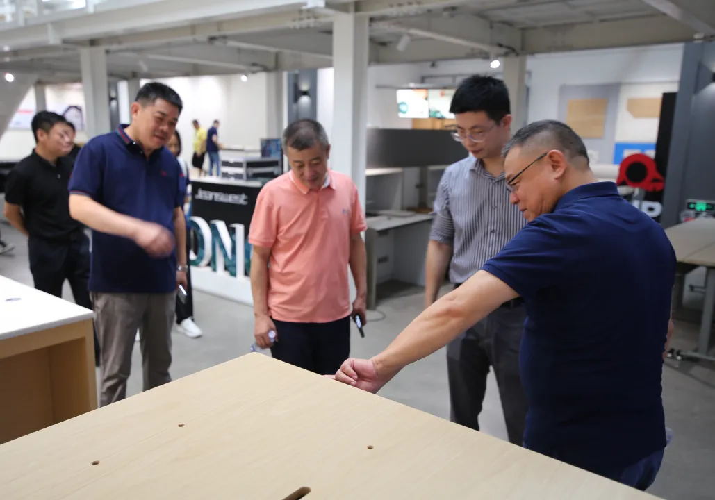 金意陶集團副總經(jīng)理、工程事業(yè)部總經(jīng)理李勤一行還參觀了常宏研究院研發(fā)中心、產(chǎn)業(yè)園展示中心、生產(chǎn)車間等,了解了常宏在智能化、裝配式技術(shù)以及智能化和工業(yè)化結(jié)合等方面的研發(fā)和應(yīng)用,雙方就行業(yè)現(xiàn)狀和發(fā)展方向以及今后聯(lián)合研發(fā)、合作共贏等方面進行了探討。